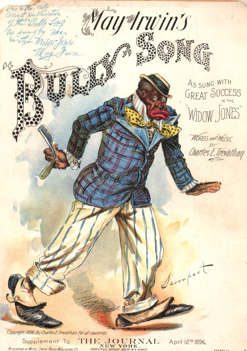 Cover of the sheet music for “The Bully Song,” depicting a racist stereotype out of minstrelsy,